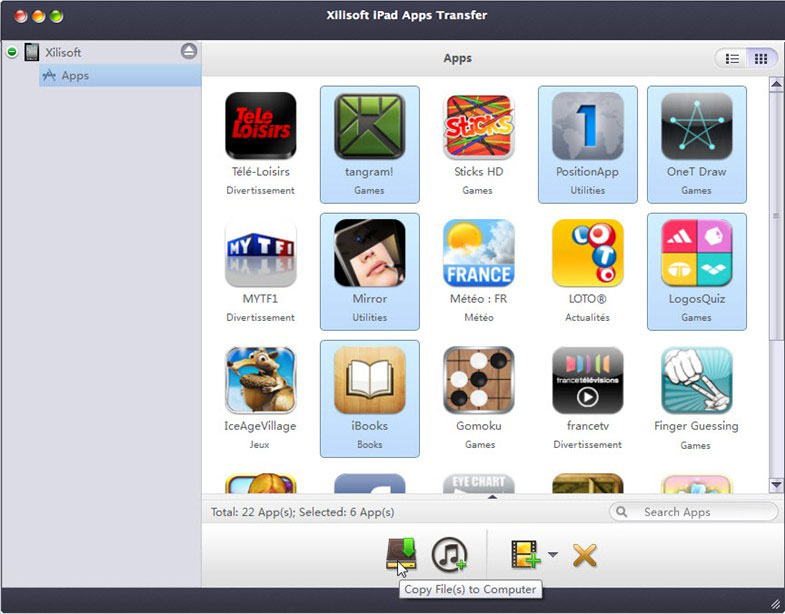 Specially designed for Mac users and iPad app lovers, Xilisoft iPad Apps Transfer for Mac could help to manage your iPad apps and app documents. You can backup iPad apps to Mac, delete apps on your iPad or move the apps back to iPad conveniently. Moreover, you can also add/save/delete app documents on your iPad directly with Xilisoft iPad Apps Transfer for Mac.