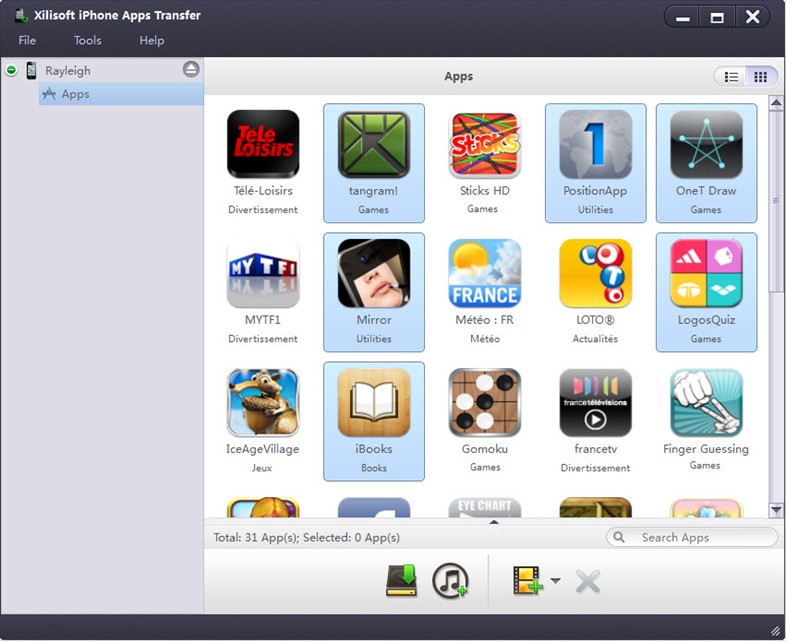As a full featured apps transfer tool for your iPhone, Xilisoft iPhone Apps Transfer can meet all your needs for managing iPhone apps: copy and transfer iPhone apps to PC/iTunes, delete apps on your iPhone as well as move the apps back to iPhone or transfer to another iPhone.