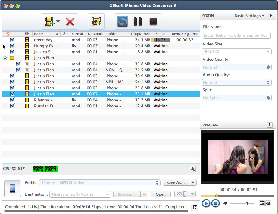 For Mac users and iPhone movie fans, Xilisoft iPhone Video Converter for Mac can convert AVI, MPEG, WMV, MP4, 3GP, VOB, etc. to iPhone supported MP4 video format. And the Mac iPhone video converter can also convert videos or audios to iPhone music M4A, MP3, and WAV.