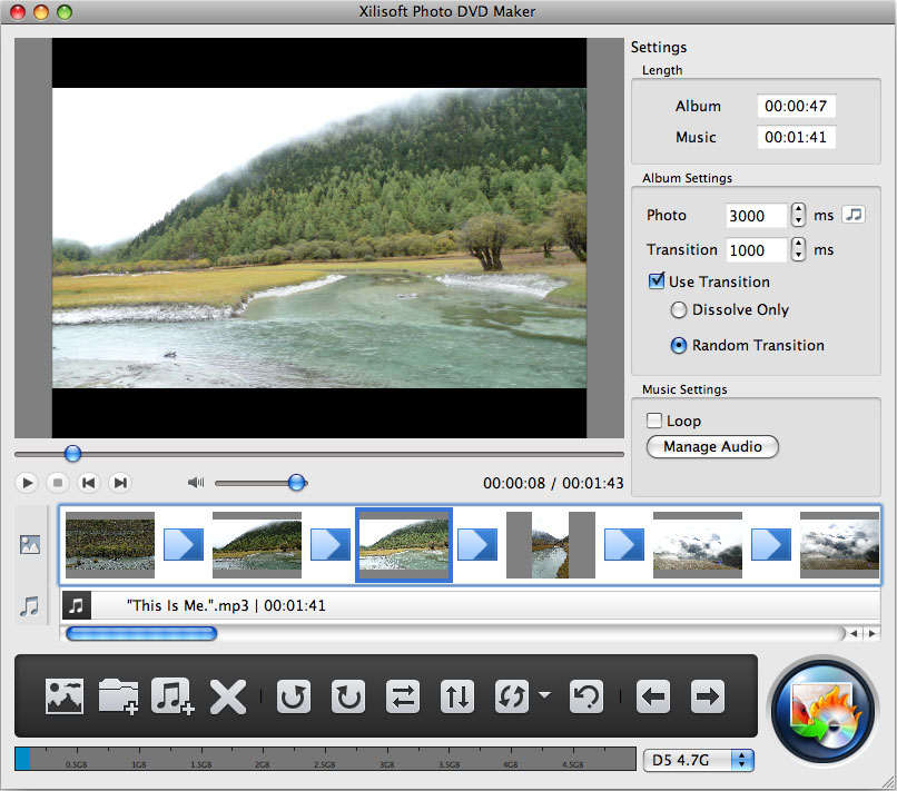 Anxious about what is the most convenient way to conserve thousands of digital photos? Or wanna enjoy viewing the photos smoothly without flipping them one by one on the computer? Xilisoft Photo Home DVD Maker for Mac provides a best solution to convert all your photo collections to DVDs and enjoy watching your photos on a Home DVD player. You can easily convert a batch of photos with Xilisoft Photo Home DVD Maker for Mac in simple steps to DVDs and burn them into a high-quality Home DVD on Mac.
