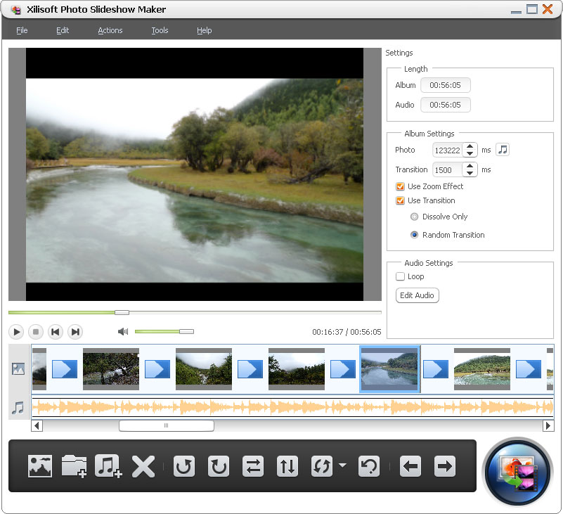 You are enabld to create more personalized photo videos by appending background music from imported audios, add transitional effects between images, adjust the orientation and display sequence of the imported photos and etc.
