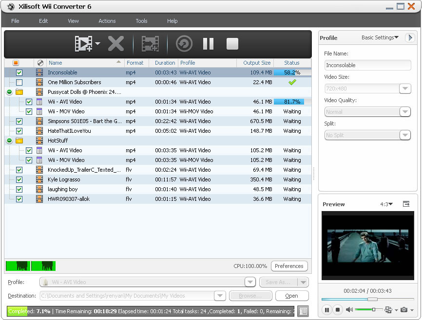 Xilisoft Wii Converter also enables you to convert one source file to different formats simultaneously to keep you from repeated operations. You can also customize the target media files by setting a variety of parameters such as bit rate, frame rate, aspect ratio, brightness, contrast, saturation to get the best video quality.